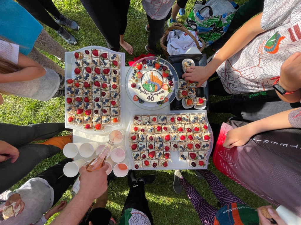 2023.gada 24.maijā orientieristi un aktīvākie Siguldas dabas un sporta mīļotāji pulcējās Morē, Siguldas novadā, lai kārtējo reizi, kā ik nedēļu, sacenstos savā starpā iknedēļas “Siguldas Kompass” tautas orientēšanās sacensībās. Bet šī reize bija īpaša, jo mēs nelielā ballītē atzīmējām arī “Siguldas Kompass” 40 gadu jubileju. Ballīte izpaudās sportiski mierīgā formā: aprunājāmies par vēsturi, uztaisījām kopīgu bildi visiem šī gada seriāla organizatoriem, un dažiem no tiem, kas “Siguldas Kompass” seriālu organizēja senos laikos, un ēdām speciāli mūsu pasākumam ceptu medus kūku, un dzērām vieglo šampanieti. Un protams, skrējām mežā. Bērni spēlēja futbolu un dauzījās pļaviņā.