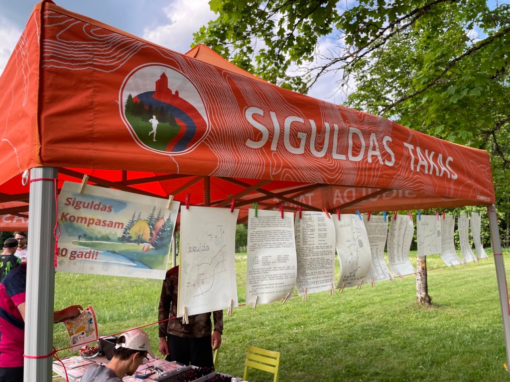 Pie sacensību telts bijām izvietojuši izdrukas no 1983/83/85 gada bukletiem, kur aprakstīti Siguldas Kompass pirmsākumi, sākotnējie organizatori un sacensību uzvarētāji. Interesanti bija vērot, kā kādreiz uz ar roku zīmētas kartes tika parādītas plānoto sacensību kārtas un kā uz tām nokļūt, izmantojot autobusus un autobusu atiesanas laikus.
