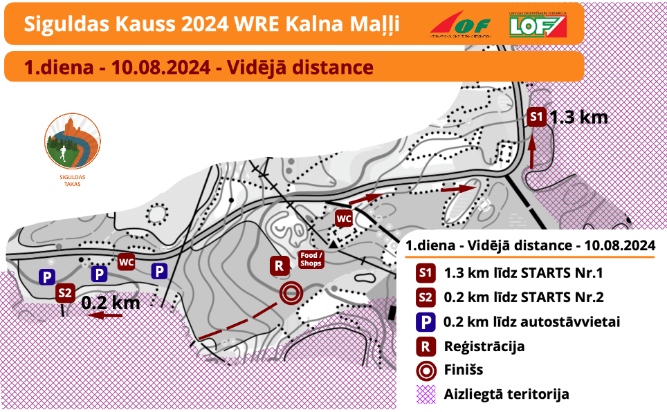 ENG: Starting from 7th August, the MODEL map is available for the forest bordering the Sigulda Kauss 2024 WRE embargo zone. Maps are available in printed form at Sigulda Tourism Information Center (open 09:00-18:00). Controls are placed in the forest, without electronic marking. The cost of one MODEL map is 5 EUR. Please transfer the fee for the MODEL map to the bank account of the competition organiser (see Payments in the bulletin). The card is printed on the same material (Pretex) as the Sigulda Kauss competition map. If the printed maps available at the Sigulda Tourist Center will run out, then you have to print the maps yourself from the PDF file that can be downloaded from the competition website. Model map size is A4. Available scale for MODEL map: M:10’000 H2.5M.
